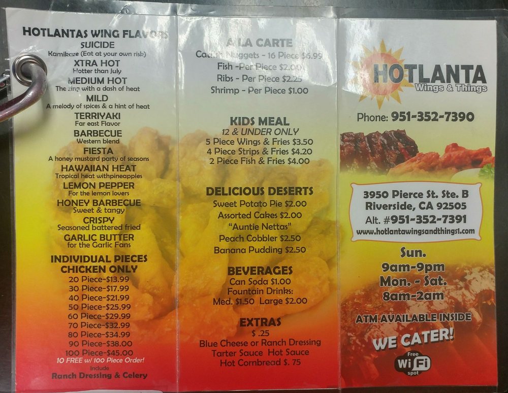 Hotlanta Wings And Things Menu